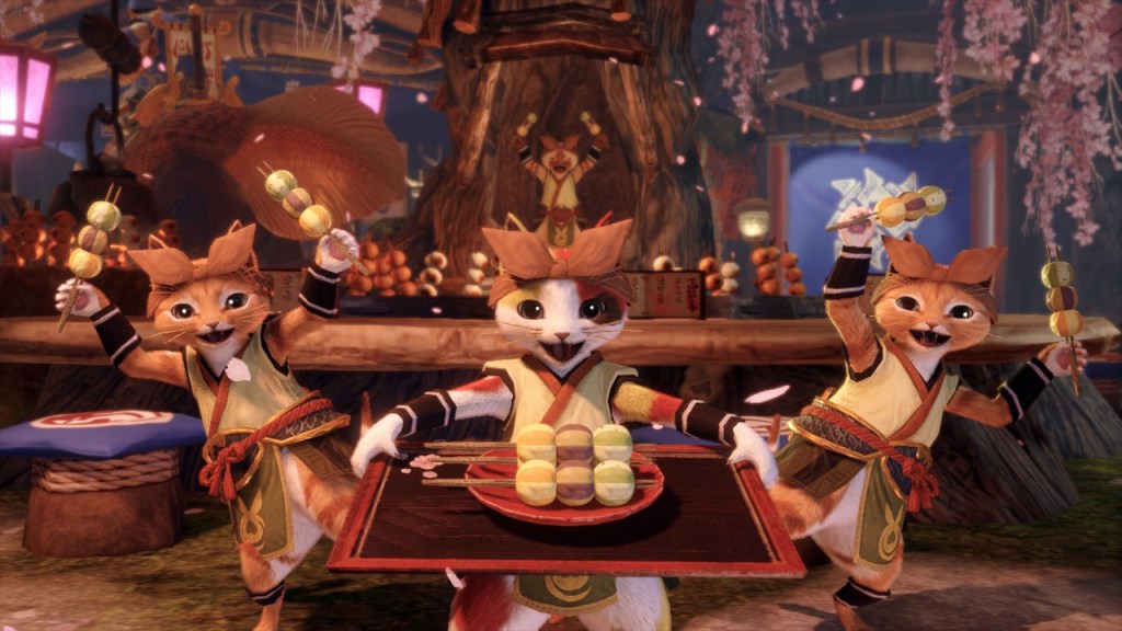 In older games, you would have either Palicos or Shaka Lakas, little cats or dolls that would accompany you on your hunts and fight by your side, heal, and offer support. Palamutes still do the former but their main purpose is to provide speedy conveyance to the player.